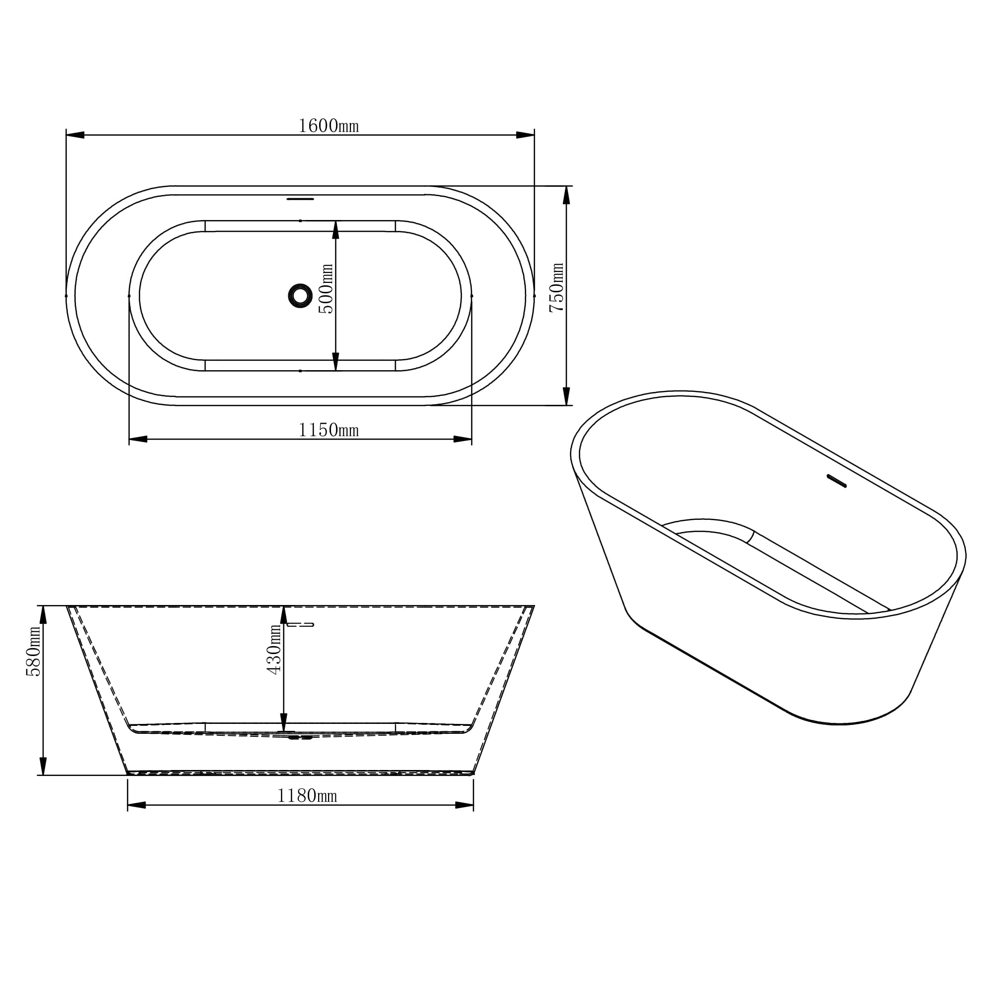 Elegancka, wolnostojąca wanna o wymiarach 1600 mm x 750 mm x 580 mm jest wytworzona z najwyższej jakości akrylu, wzmocnionego włóknem szklanym i żywicą, co zapewnia niezwykłą trwałość i wytrzymałość. Materiały te sprawiają, że wanna jest odporna na zarysowania i pęknięcia, jednocześnie oferując niezrównane właściwości izolacyjne, które utrzymują wodę ciepłą na dłużej.