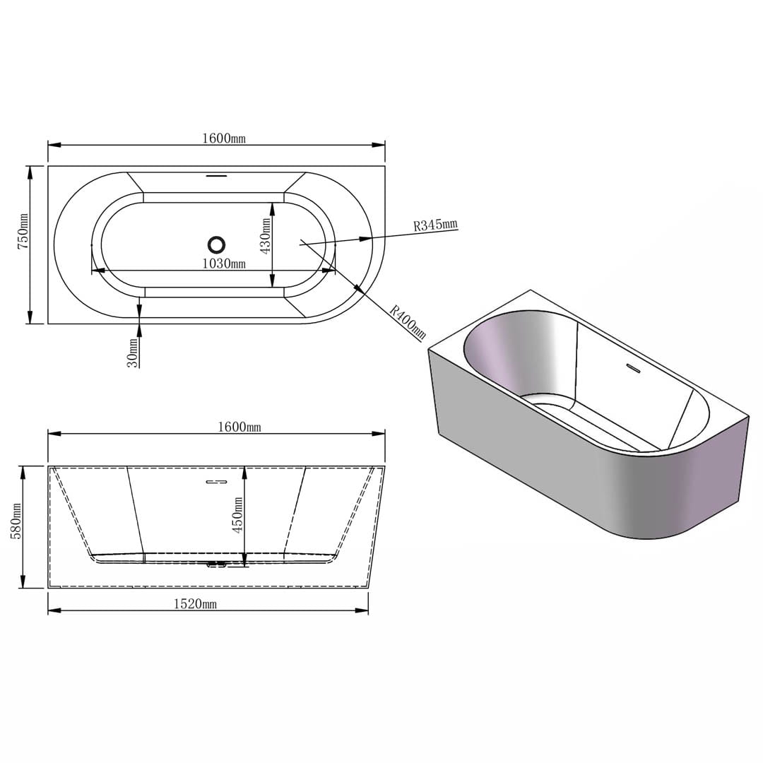 Elegancka, narożna, przyścienna lewo-stronnie wanna o wymiarach 1600 mm x 750 mm x 580 mm jest wytworzona z najwyższej jakości akrylu, wzmocnionego włóknem szklanym i żywicą, co zapewnia niezwykłą trwałość i wytrzymałość. Materiały te sprawiają, że wanna jest odporna na zarysowania i pęknięcia, jednocześnie oferując niezrównane właściwości izolacyjne, które utrzymują wodę ciepłą na dłużej.
