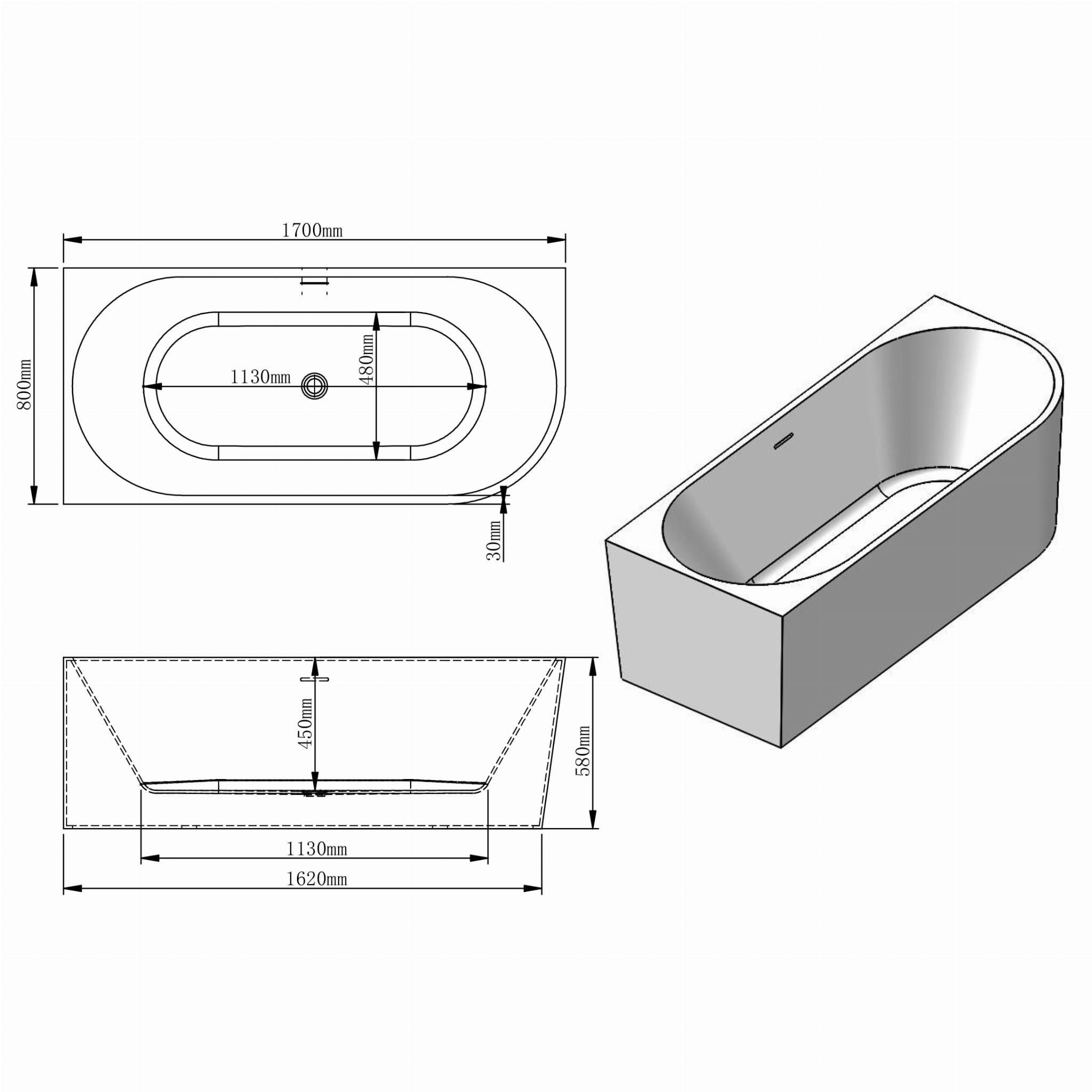 Elegancka, narożna, przyścienna lewo-stronnie wanna o wymiarach 1700 mm x 800 mm x 580 mm, jest wytworzona z najwyższej jakości akrylu, wzmocnionego włóknem szklanym i żywicą, co zapewnia niezwykłą trwałość i wytrzymałość. Materiały te sprawiają, że wanna jest odporna na zarysowania i pęknięcia, jednocześnie oferując niezrównane właściwości izolacyjne, które utrzymują wodę ciepłą na dłużej.