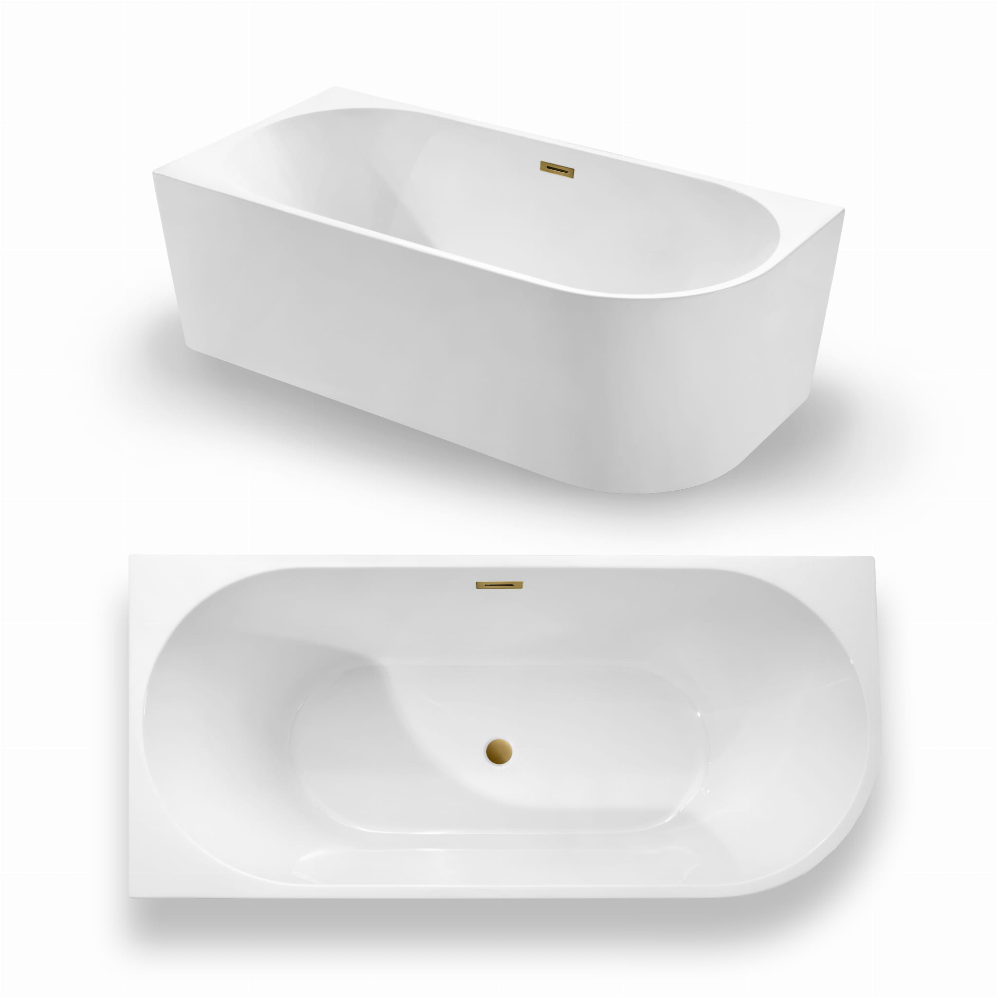 Wanna wolnostojąca narożna przyścienna Lewa - Złoty Szczotkowany Przelew 160x75x58 K-JAN07