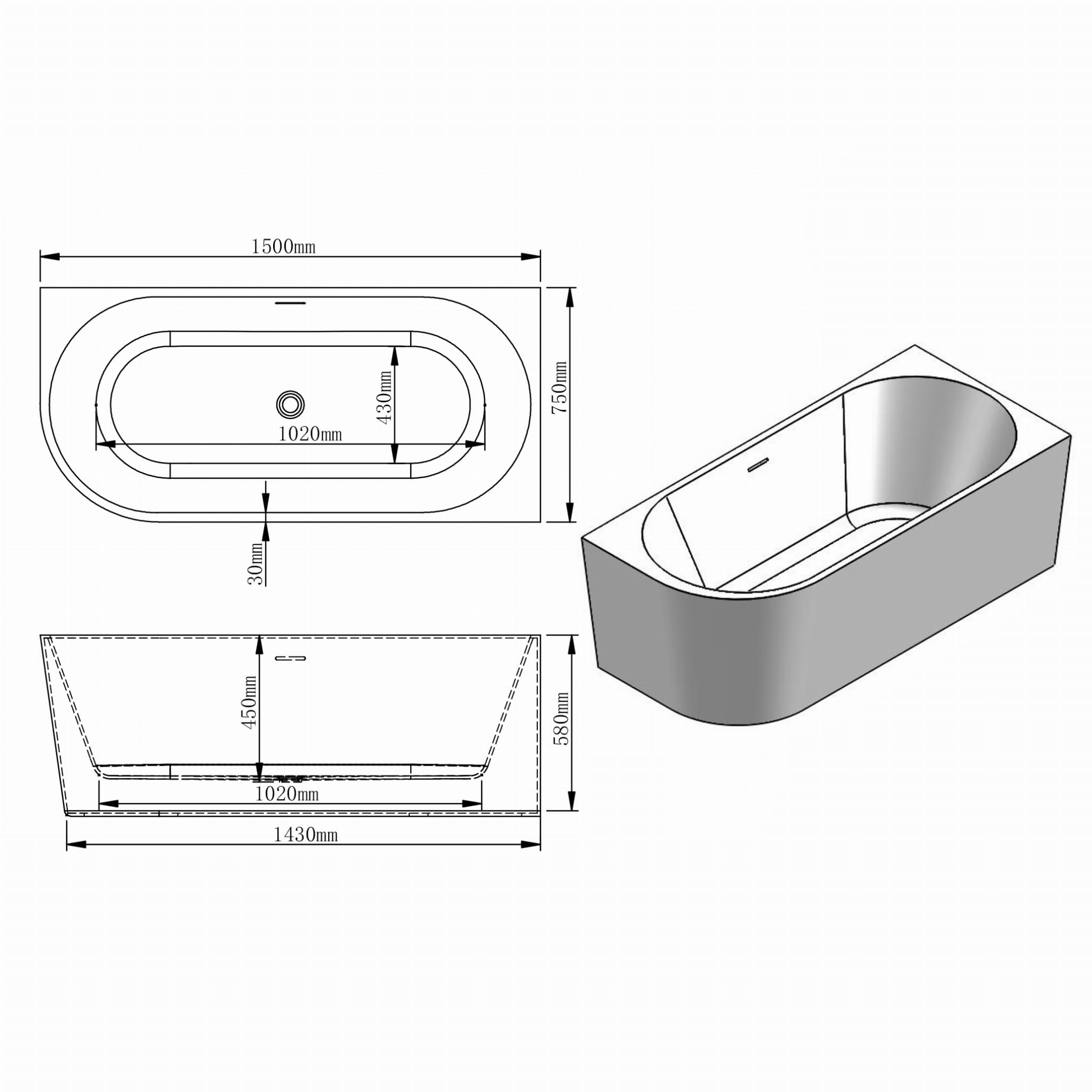 Elegancka, narożna, przyścienna prawo-stronnie wanna o wymiarach 1500 mm x 750 mm x 580 mm, jest wytworzona z najwyższej jakości akrylu, wzmocnionego włóknem szklanym i żywicą, co zapewnia niezwykłą trwałość i wytrzymałość. Materiały te sprawiają, że wanna jest odporna na zarysowania i pęknięcia, jednocześnie oferując niezrównane właściwości izolacyjne, które utrzymują wodę ciepłą na dłużej.