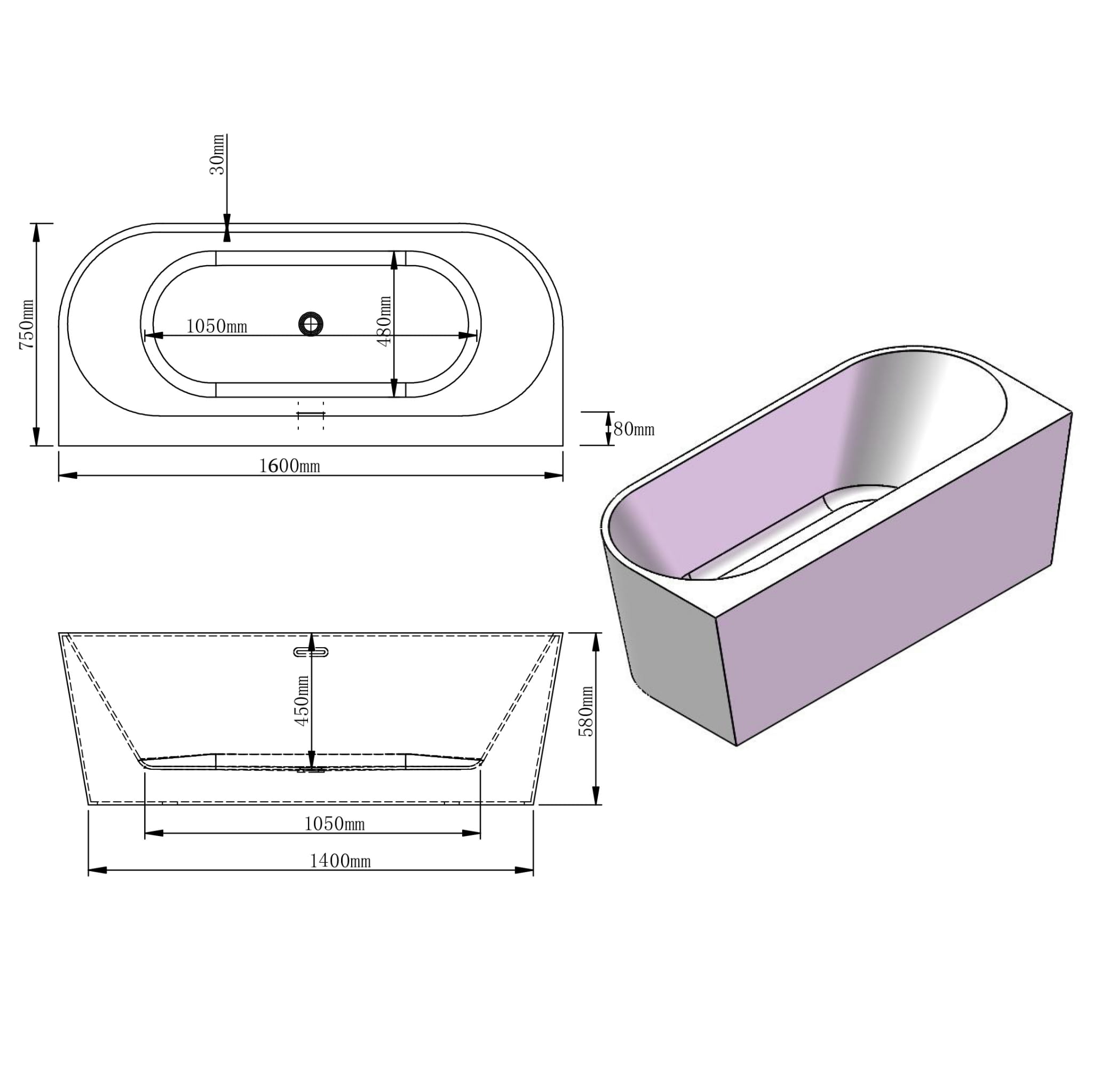 Elegancka, wolnostojąca wanna przyścienna o wymiarach 1600 mm x 750 mm x 580 mm została wykonana z najwyższej klasy akrylu, wzbogaconego o włókno szklane i żywicę, co gwarantuje jej wyjątkową trwałość i solidność. Te materiały sprawiają, że wanna jest odporna na zarysowania i uszkodzenia, jednocześnie oferując doskonałe właściwości izolacyjne, które pozwalają dłużej utrzymać temperaturę wody.