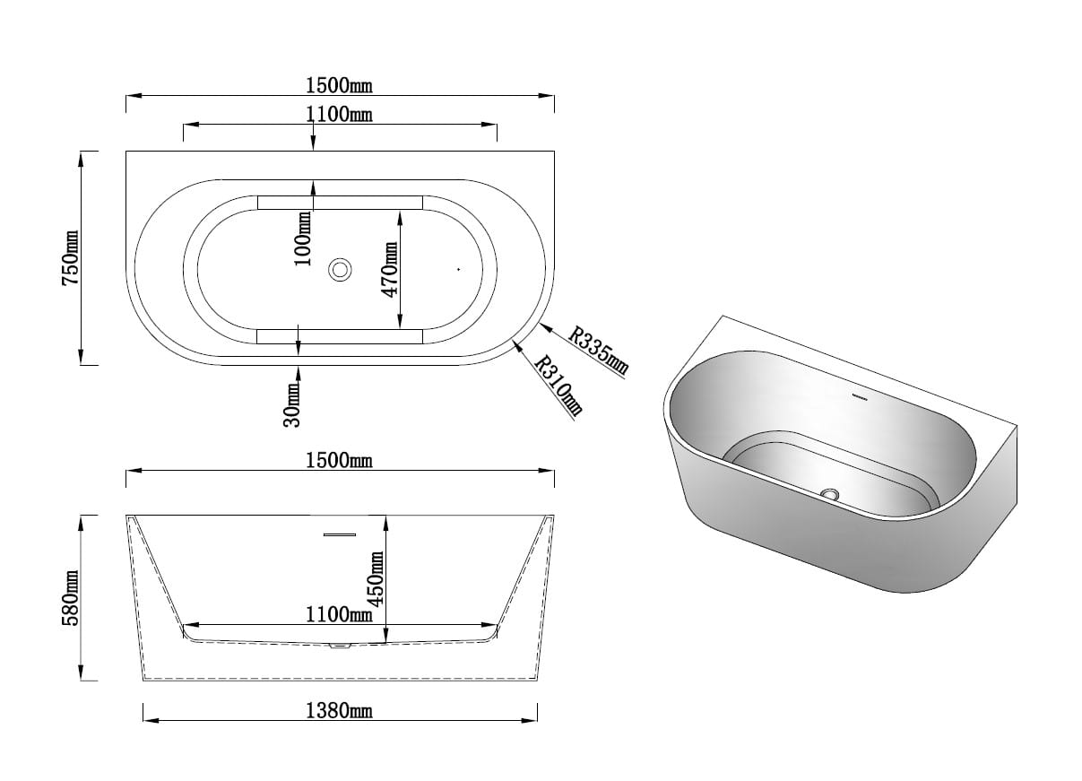 Elegancka, wolnostojąca, przyścienna wanna o wymiarach 1500 mm x 750 mm x 580 mm jest wytworzona z najwyższej jakości akrylu, wzmocnionego włóknem szklanym i żywicą, co zapewnia niezwykłą trwałość i wytrzymałość. Materiały te sprawiają, że wanna jest odporna na zarysowania i pęknięcia, jednocześnie oferując niezrównane właściwości izolacyjne, które utrzymują wodę ciepłą na dłużej.